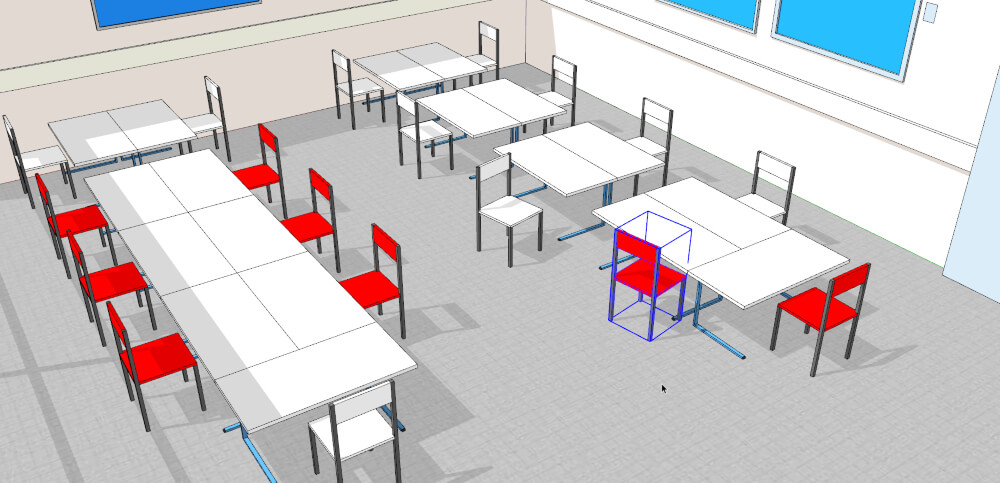 Adding and removing chairs and tables to your design is a simple matter of picking them from the given library or creating a duplicate of those already present in the view. Thanks to the power of the SketchUp, you can of course always create and add your own designs or pick the ones made by others from the SketchUp 3D Warehouse.