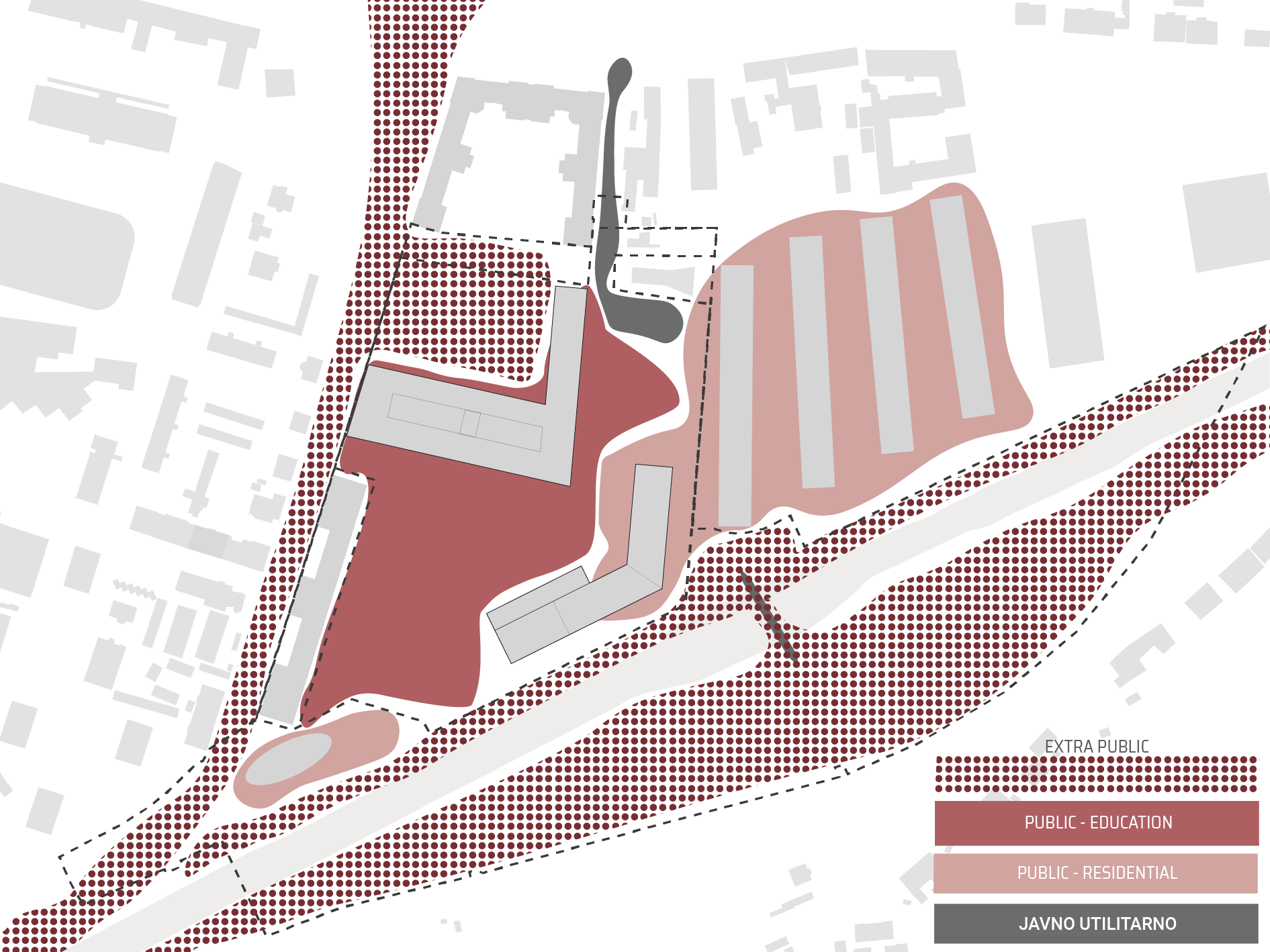 City Municipality of Ljubljana has organized a tender, searching for the most appropriate solution for an urban design/master plan of a central urban area in the Slovene capital city. On so-called Roška area, the construction of a new Academy of Fine Arts and Design, a new student residence, and a new Secondary School of Design and Photography with a sports hall and outdoor facilities is planned.